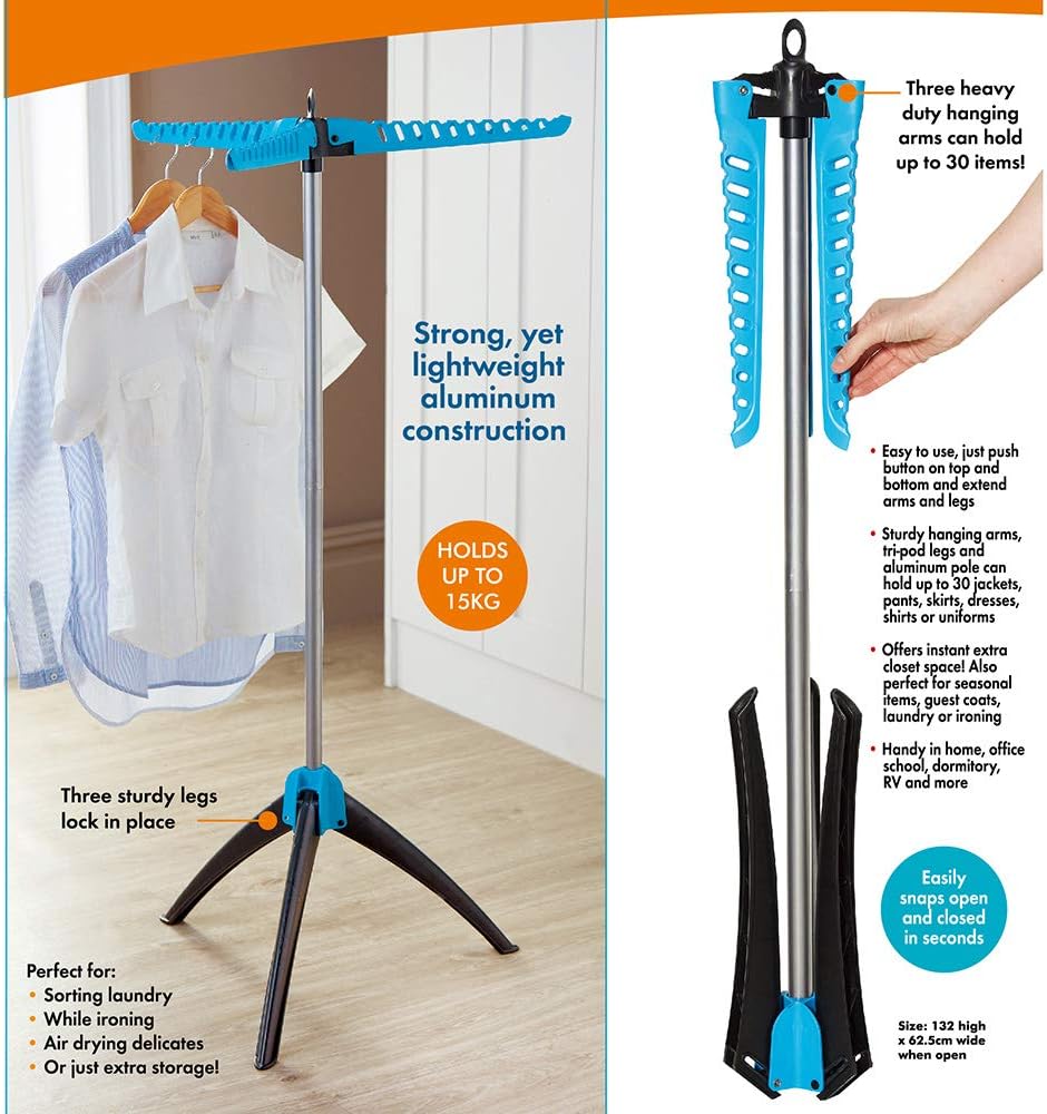 The tripod base combined with its durable steel construction provides maximum stability, perfectly draping damp dresses to hefty winter coats without having to carefully balance the weight.